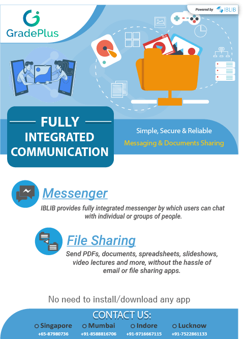 GradePlus (A product of IBLIB EDUCATIONS) has been established with a commitment to provide education to everyone to advance knowledge. GradePlus provides an adaptive learning and school management system with the help of machine learning algorithms and advanced technology. GradePlus is committed to provide an environment to students and teachers where teachers can optimize potential of the students and prepare them for future challenges in an optimal way.