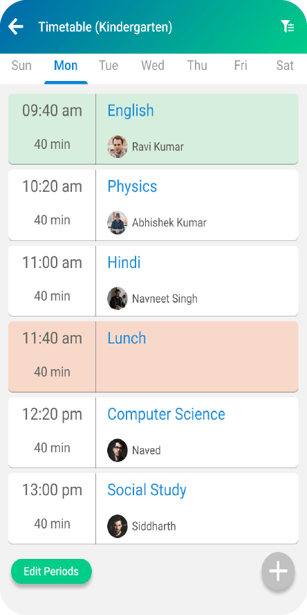 - Daily, Classwise & Individual Timtable View.